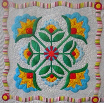 Block 1 of Aunt Millie’s Garden Machine Quilted by Rose Bell Published April 18, 2012 at 209 × 206 in Sunday Afternoon Applique Group « Previous Next »